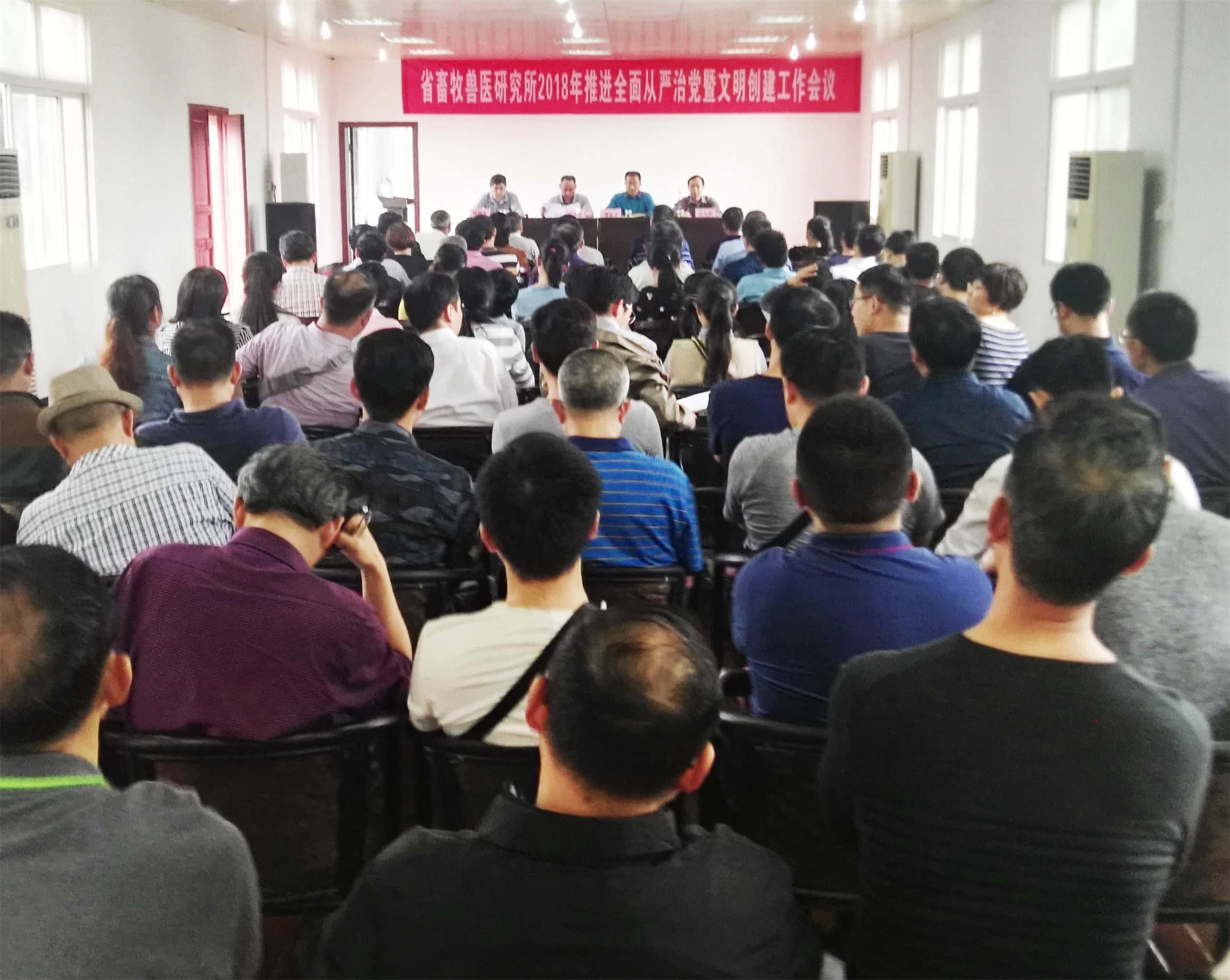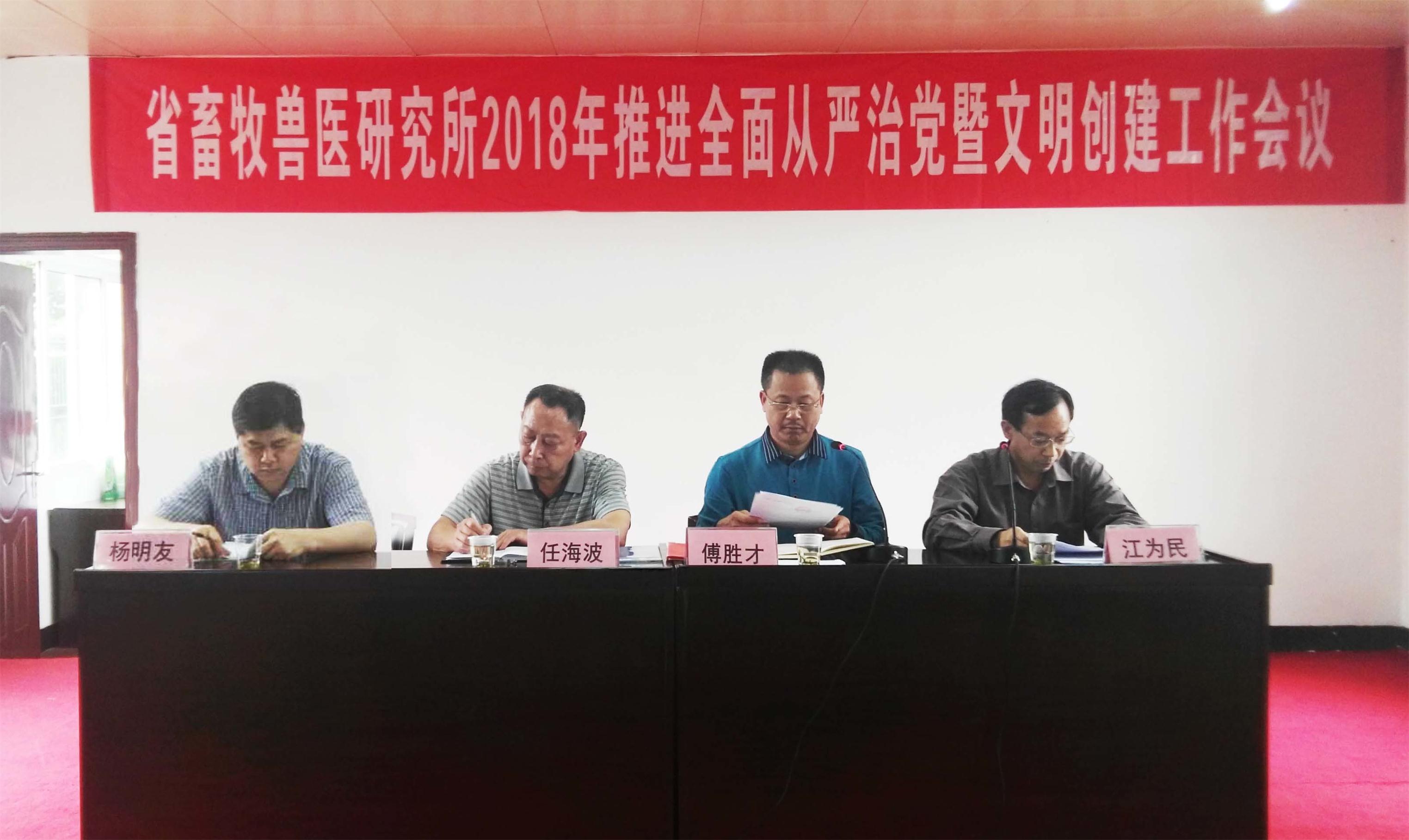5月10日,我所召开2018年推进全面从严治党工作会议,省畜牧水产局监察室主任任海波、机关党委副书记杨明友出席会议,会议由所党委书记、所长傅胜才主持,全所党员与干部职工参加会议。