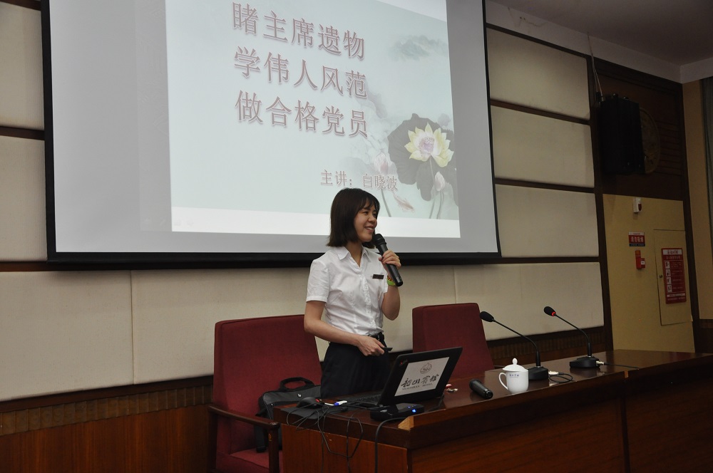 之后,邀请韶山毛泽东同志纪念馆宣教部副部长、文博馆员白晓波同志为全体党员讲授了“睹主席遗物、学伟人风范、做合格党员”的专题党课,党课由所党委书记、所长傅胜才同志主持。白老师从廉洁无私的奉献精神、艰苦朴素的生活作风、积极健康的兴趣爱好、慈严并重的亲情关系四个方面声情并茂讲述了毛主席一心为民、艰苦朴素、亲情似海的人格风范。从毛泽东同志穿打了73个补丁的睡衣,普普通通的生活费收支账本,“饭可以一日不吃,觉可以一日不睡,书不可以一日不读”的读书理念,磅礴大气的书法诗词,只希望儿女做普普通通的劳动者的教育理念,到毛岸英牺牲后一直保存儿子贴身衬衣的慈父,一件件直观生动的遗物、一桩桩感人至深的事例,大家深刻感受到毛主席勤政为民、廉洁奉公、高尚追求的共产党人楷模。每每听到主席鲜为人知、催人泪下的感人故事,大家都悄然落泪。