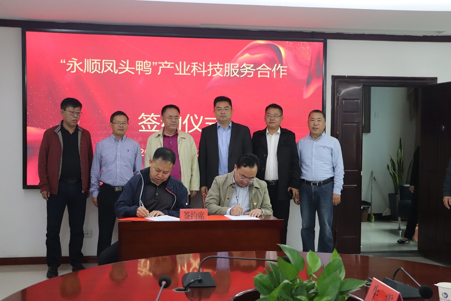 9月22日,专家服务团来到湘西自治州永顺县,针对当地特色水禽的保护和开发开展相关工作。此前,湖南农科院驻永顺扶贫工作队于2019年在当地发现了特色水禽遗传资源永顺凤头鸭,其头顶有一簇球状绒毛,现有白羽、黑羽和麻羽3个种群,其中麻羽凤头鸭体形中等,兼具观赏和肉用价值。永顺县政府为加强永顺凤头鸭的保种与开发利用,发展乡村振兴支柱特色产业,特邀请水禽体系专家服务团开展长效产学研合作。永顺县委副书记、县长陈海波,县委常委、组织部长李延堃,县委常委、副县长尚军辉等出席签约合作仪式,专家服务团与永顺县委人才领导小组办公室签订了《“永顺凤头鸭”产业科技服务合作协议》。座谈会上,各位专家围绕永顺凤头鸭品种保护、繁育扩群、杂交利用、品牌塑造、全产业链建设等方面建言献策,并表示将编制具体可行的中长期实施方案,致力助推“永顺凤头鸭”产业做大做强,巩固脱贫攻坚成效,有效促进乡村振兴。中国农村杂志社、湖南红网和永顺县融媒体等对此次活动进行了采访报道。