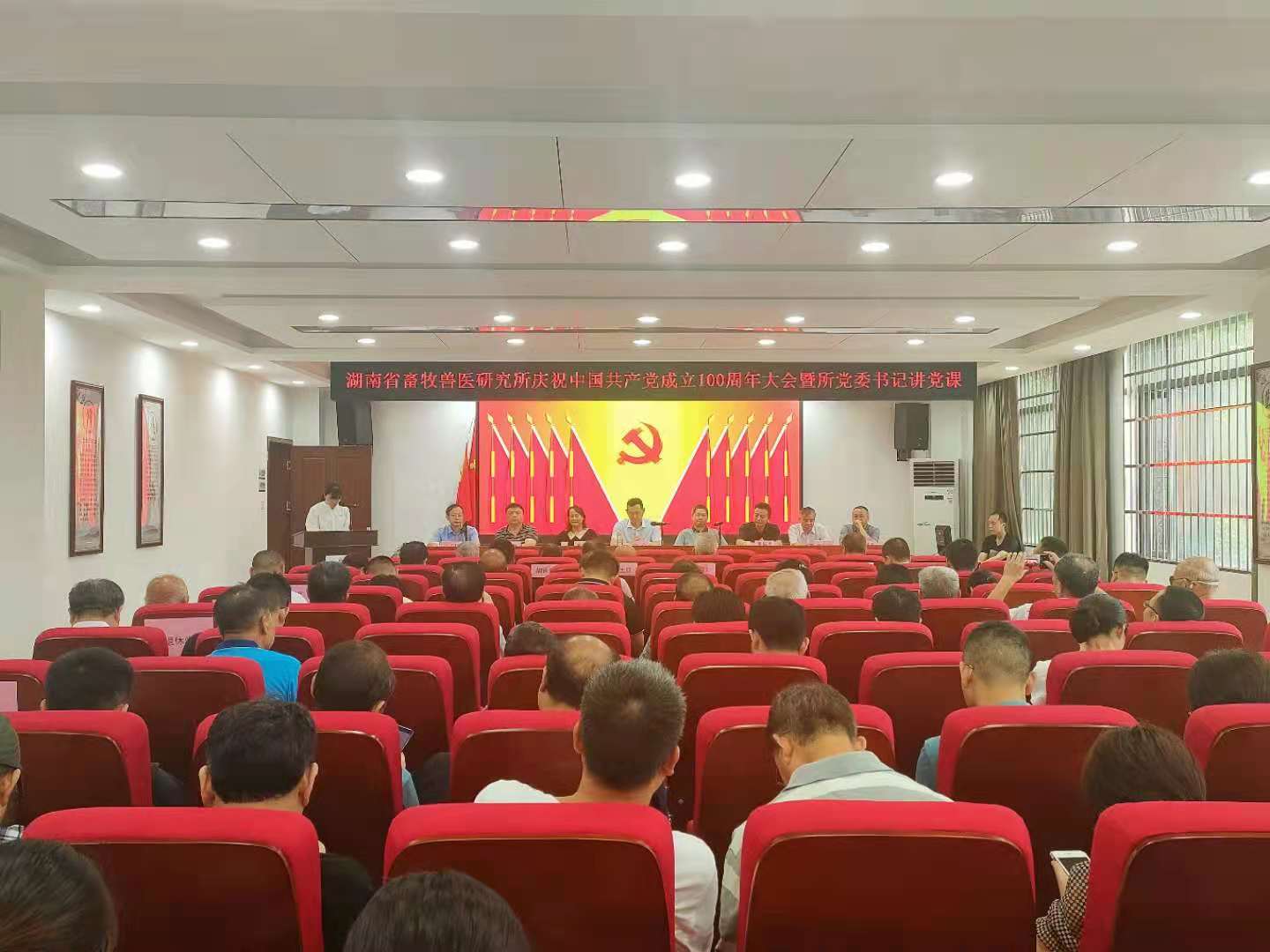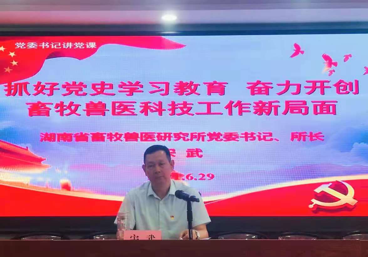 6月29日上午,为庆祝中国共产党成立100周年,湖南省畜牧兽医研究所召开了庆祝建党100周年大会暨所党委书记讲党课。省畜牧兽医研究所党委书记、所长宋武在会上讲话并讲党课,所党委委员、副处级纪检员江为民主持会议。全所干部职工、离退休党员100余人参会。