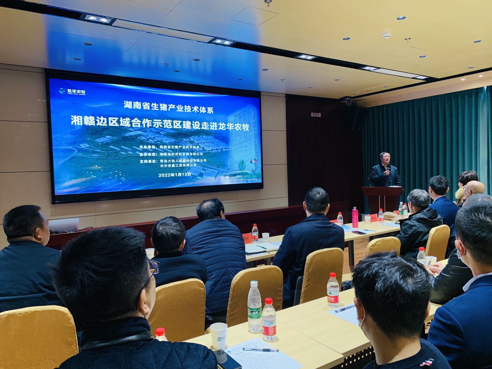 2021年对于养猪人来说是极不平凡的一年,养猪业也发生了无数大事,猪价大起大落、生猪“禁调令”实施、饲料价格不断上扬、非瘟疫情常态化等。为认真总结和规划未来,同时切实推进湘赣边区域合作示范区建设三年行动计划(湘农联合[2021]38号),2022年1月13日,湖南省生猪产业技术体系在首席专家彭英林研究员的带领下,组织专家前往龙华农牧百万级超级工厂进行现场观摩并开展学术交流。