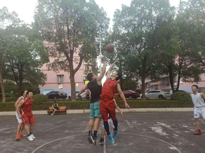9月25日,在篮球场上开展了迎国庆“文明杯”职工篮球赛。两支队伍在球场上进行激烈角逐,完美的助攻、果断的断球、精准的3分球,利落的篮板……一个个帅气的身影让观众忍不住拍手称赞!球场边,不少职工、家属都被精彩的赛况吸引前来观看。