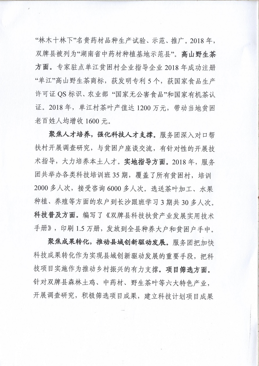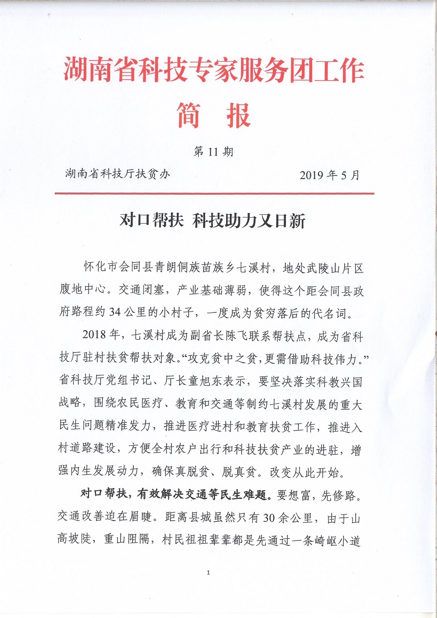 湖南省科技专家服务团工作简报(第11期)