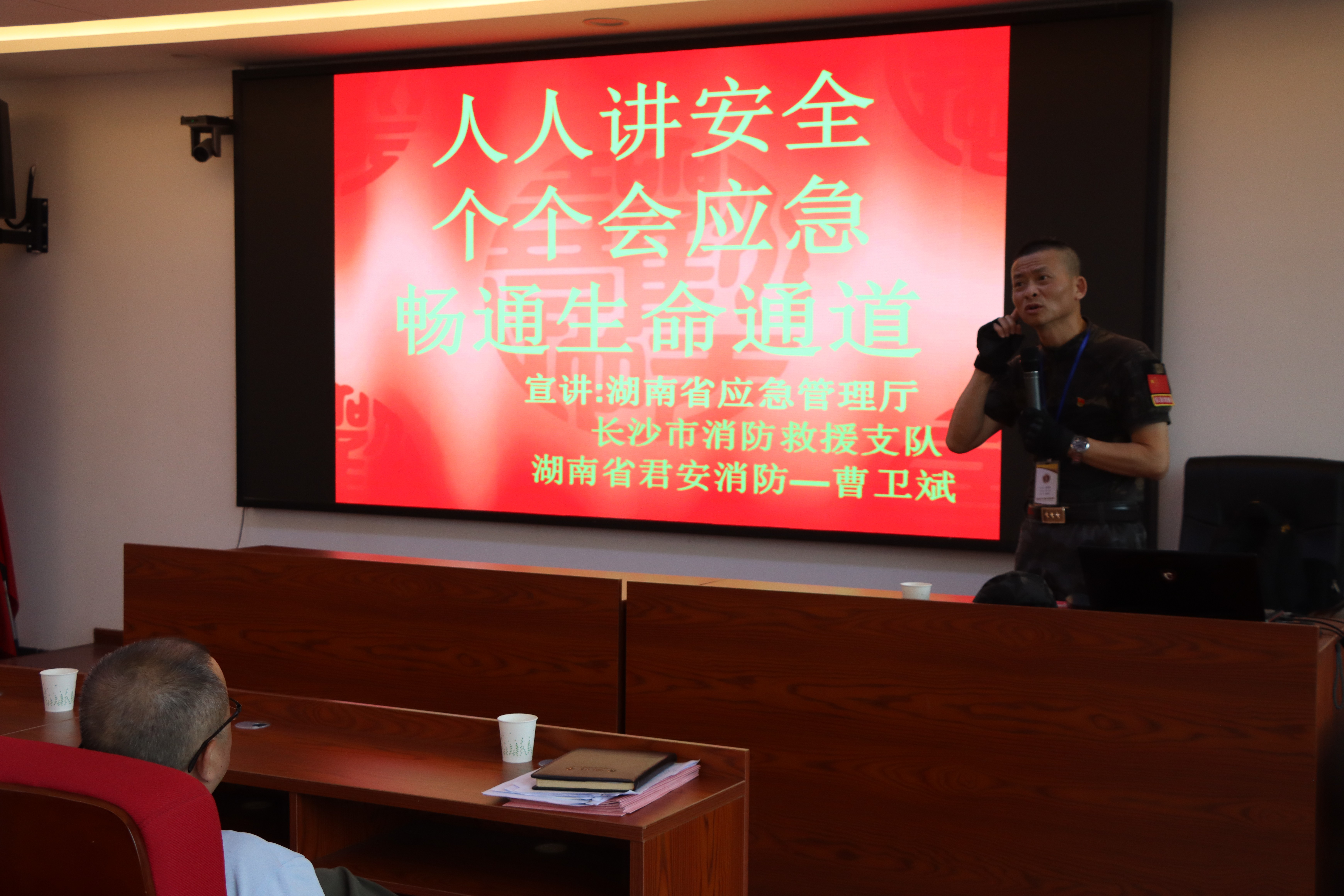 消防安全知识讲座由湖南省君安消防培训学校教官曹卫斌主讲,曹教官以“人人讲安全、个个会应急,畅通生命通道”为主题,重点对消防安全管理、危化品管理及消防设施器材实操进行了详细讲解,并开展了逃生疏散和灭火演习。