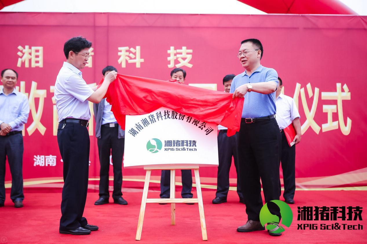 许维董事长、周文安副县长共同为湘猪科技揭牌