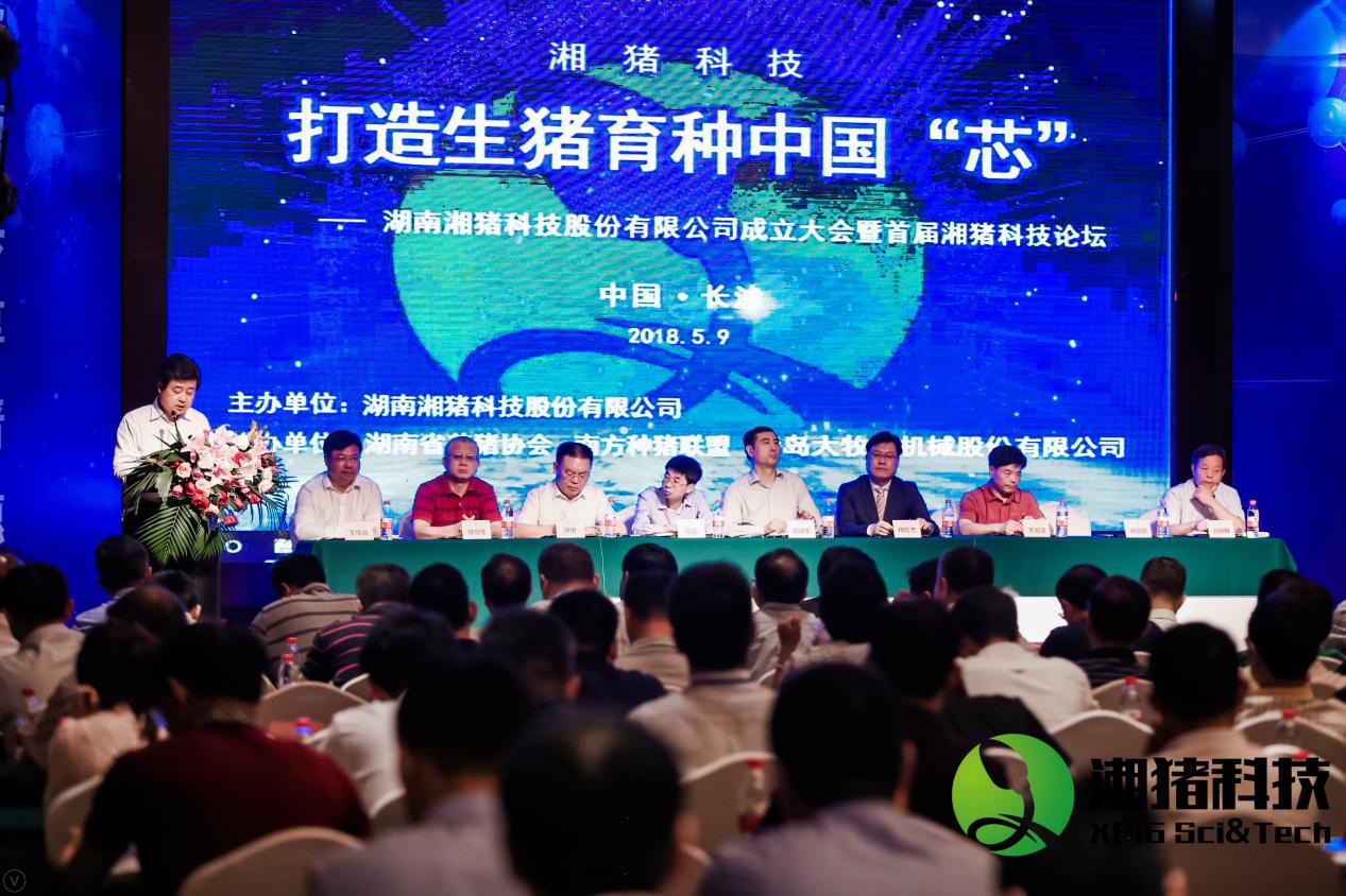 2018年5月9日,由湖南湘猪科技股份有限公司主办,湖南省养猪协会、南方种猪联盟、青岛大牧人机械股份有限公司协办的湖南湘猪科技股份有限公司成立大会暨湘猪科技论坛,在湖南长沙鑫远白天鹅酒店隆重举行。