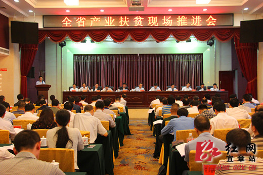 5月30日,全省产业扶贫现场推进会在宜章召开。副省长戴道晋出席会议并讲话。省政府副秘书长曹英华主持会议。省农委、省发改委、省扶贫办等省直相关单位负责人、14个市州、51个重点县市区政府分管负责人及扶贫办主任等领导参加会议。