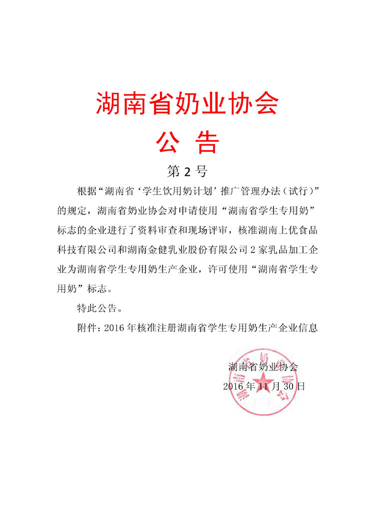 【通知公告】学生专用奶许可使用公告
