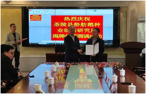 宋武与陈见林签订了茶陵县舲舫鹅种业创新研究所战略合作协议,宋武被聘任为茶陵县舲舫鹅种业创新研究所名誉所长,戴求仲被聘为技术总顾问。