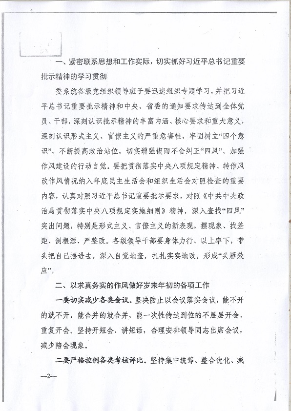 关于学习贯彻习近平总书记重要批示精神进一步加强作风建设的通知