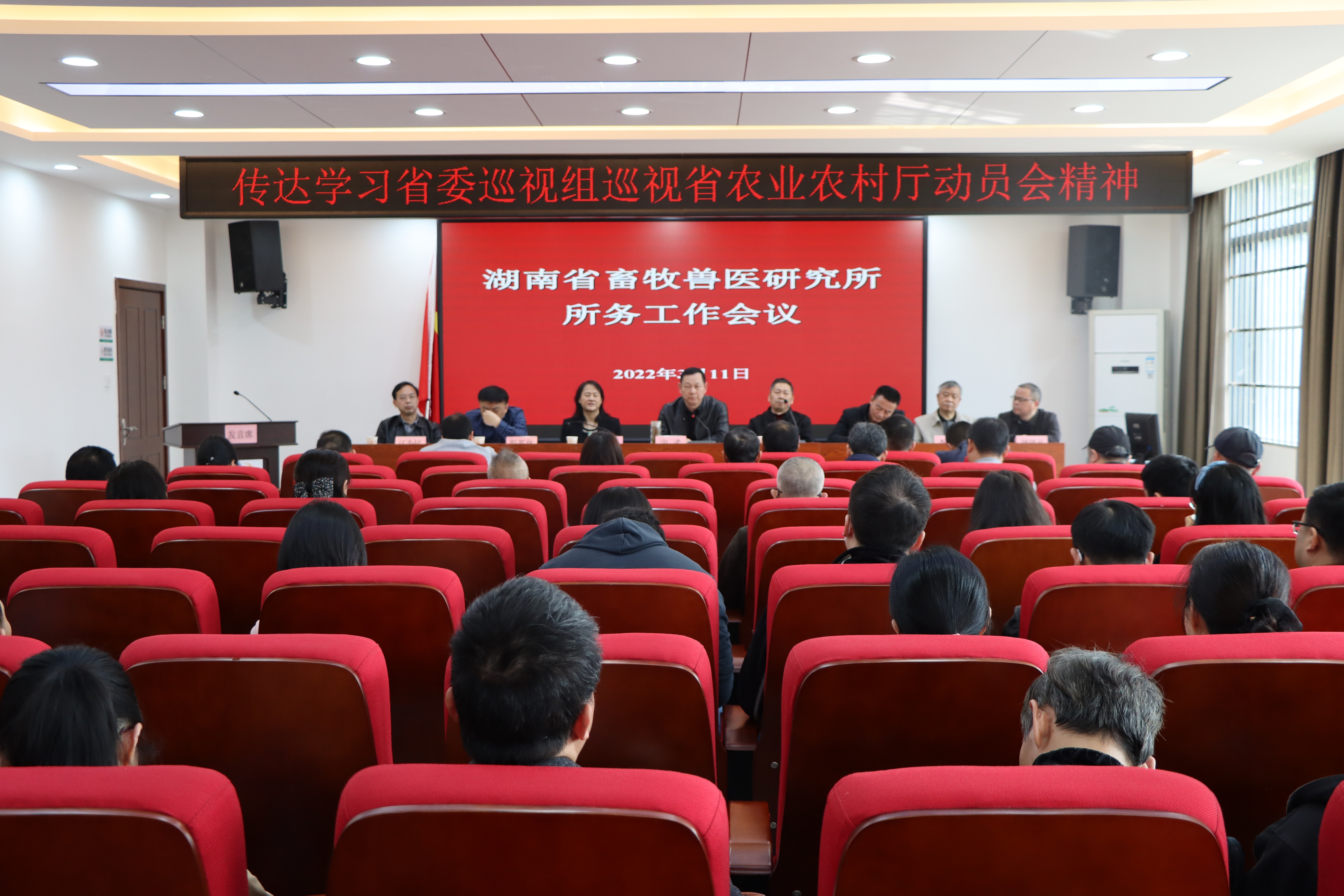 宋武传达学习了省委第八巡视组巡视省农业农村厅党组工作动员会上的讲话精神,他强调:要提高站位、高度重视、正确对待、积极配合巡视工作。并对全所2022年工作进行了部署:一是要强化政治建设,不断提高综合素质。全体干部职工要认真贯彻执行厅党组、所党委的决策部署,讲政治、守纪律,营造风清气正、争先创优、廉洁自律的良好氛围。二是强化使命感和担当意识,突出工作重点,全力抓好落实。要认清当前形势,要有忧患意识和危机感,每个科室(部门)和每个干部职工都要有自己的工作重点,各司其职,各尽其能,争取在项目申报、技术服务、科研成果上有新的突破。三是在人才引进、职称晋升、激励机制方面加大力度。加强与上级部门沟通,提前制定招人计划,引进一批优秀博硕士人才;积极争取职称晋升职数,确保每年有晋升名额;进一步完善激励机制,争取尽快出台科研激励机制,年底按制度执行。四是要发扬务实苦干、攻坚克难的精神,确保目标如期实现。年底所党委将根据工作完成情况对各科室(部门)的一年来的工作进行考核和评比。希望全所干部职工立足本职工作,一步一个脚印,攻坚克难、争创佳绩,为全省畜牧业高质量发展做出新的贡献。
