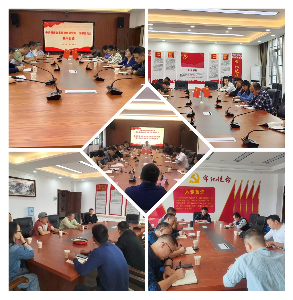 10月16日上午,中国共产党第二十次全国代表大会胜利召开,习近平总书记代表第十九届中央委员会向大会作报告,省畜牧兽医研究所党委组织全体干部职工在科研实验楼一楼大会议室集中收看了二十大开幕会。10月16日下午所属各支部分别组织支部党员对二十大报告进行学习讨论, 10月17日上午所党委理论学习中心组(扩大)举行学习,学习讨论习近平同志在中国共产党第二十次全国代表大会上的报告精神,所党委书记、所长宋武同志主持所党委理论学习中心组(扩大)学习,所党委委员、各科室(部门)负责人参加。