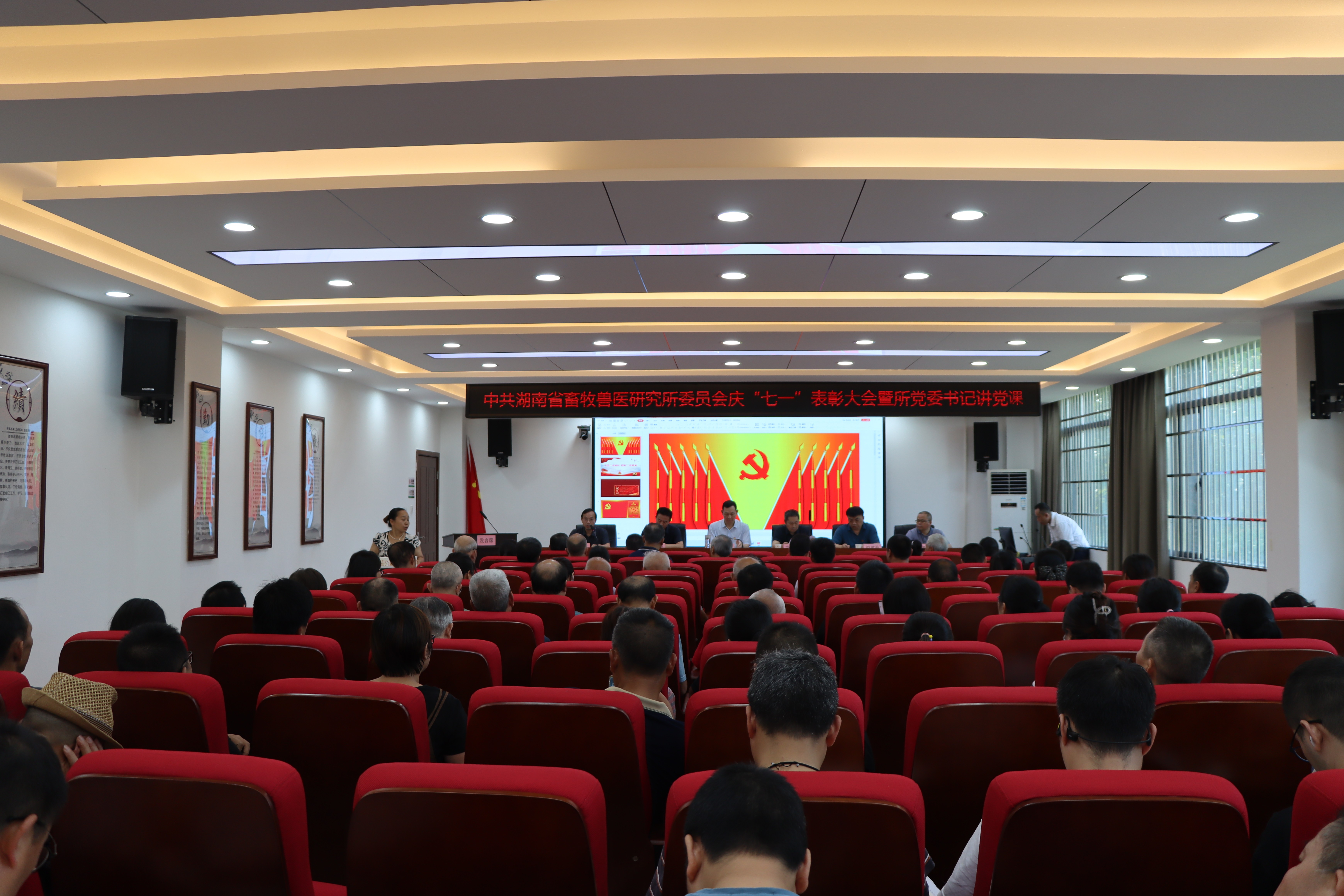 629,湖南省畜牧兽医研究所召开庆七一表彰大会暨所党委书记讲党课。省畜牧兽医研究所党委书记、所长宋武在会上讲话并讲党课,所党委委员、副处级纪检员江为民主持会议,全所在职干部职工、离退休老党员参加会议。