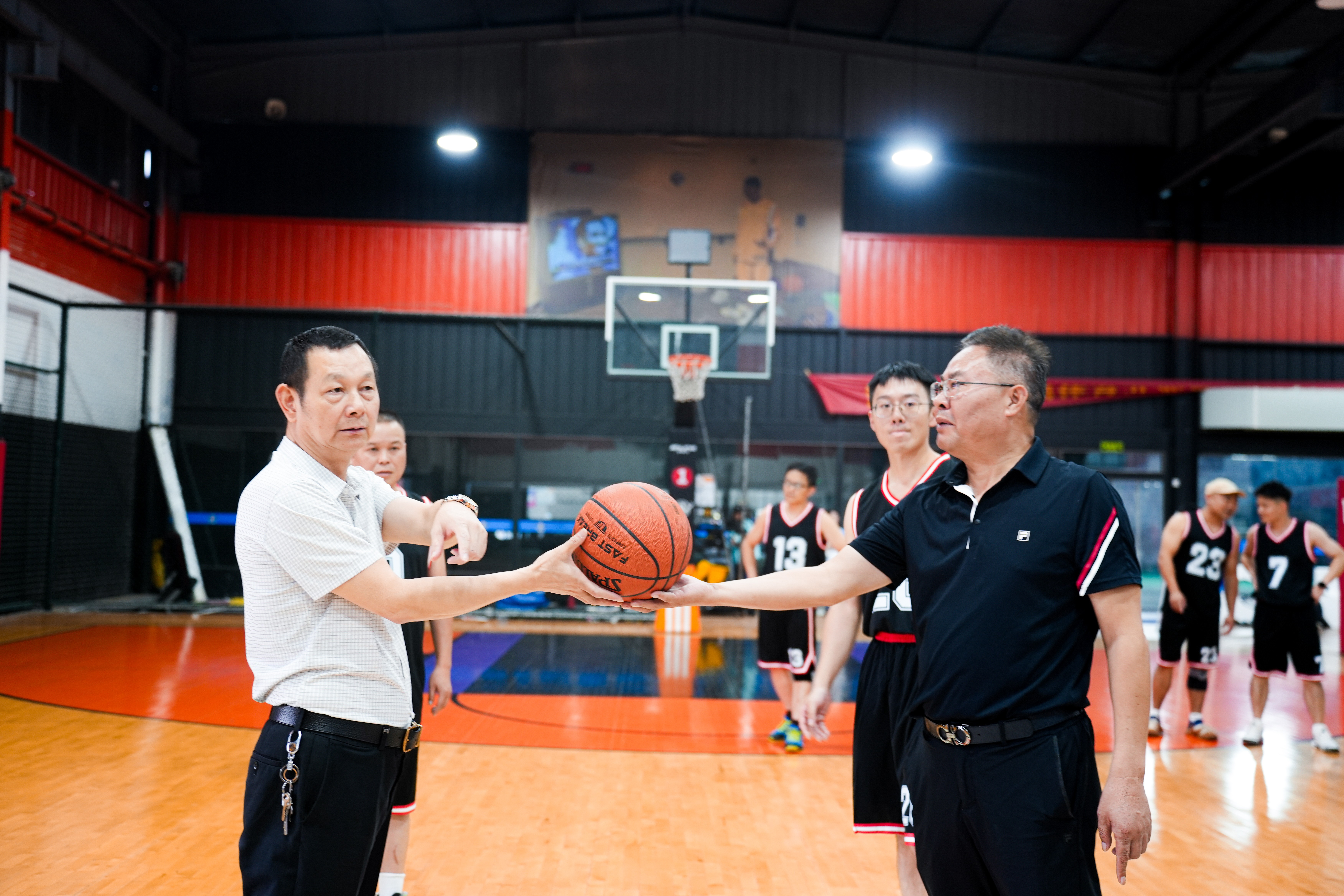 比赛期间裁判员秉持公平公正的原则执裁,使比赛顺利地的进行。本着“友谊第一,比赛第二”的原则,双方队员都展现出了极高的竞技水平和良好的精神风貌。赛场上,双方球员精神饱满,全力以赴,将专注度提升到极致,每一个默契神会的传球、灵敏巧妙的运球、精准有力的投篮都赢得了场下观众们的阵阵喝彩;无论是进攻还是防守,每一个球员都全情投入,为团队的荣誉而战。