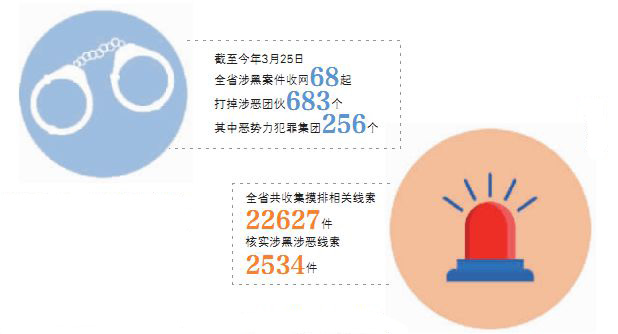 1年多来,各级政法机关积极履行主力军职责,坚持以打开路、依法严惩、打早打小、除恶务尽,以“零容忍”的态度,出重拳、下重手,迅速形成对黑恶势力犯罪的压倒性态势。截至今年3月25日,全省涉黑案件收网68起,打掉涉恶团伙683个,其中恶势力犯罪集团256个。