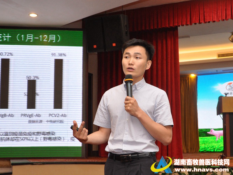 彭英林研究员主持6月2日上午的专家学术报告会。报告会上,西班牙百卫的俞道进以《植物亲营养素助力环保养殖》,双胞胎集团华中大区总裁李兴平以《规模猪场如何选择优质饲料》,中牧股份的周波以《猪瘟、蓝耳、伪狂犬的流行与防控分享》,金宇生物的林文耀以《我国猪2型圆环病毒病的流行态势及防控策略》为主题,从养猪生产和猪场疾病方面为大家作了分享和交流。