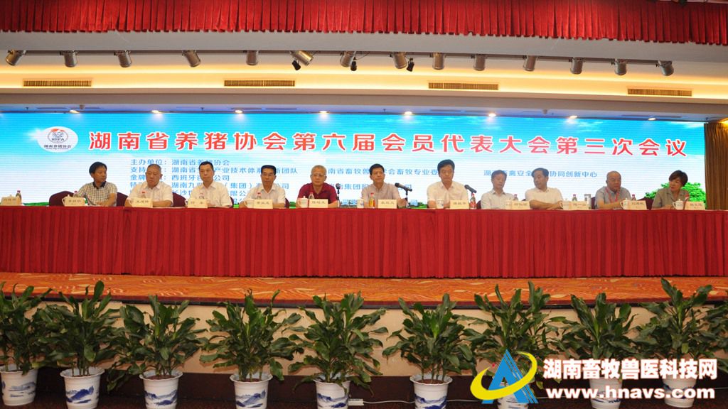 2017年6月1日至2日,湖南省养猪协会第六届会员代表大会第三次会议在湘潭召开,大会主要议题是“生猪养殖废弃物资源化利用和无害化处理”,来自全省养猪行业及相关单位的 600余名代表参加了本次会议。湖南省农业委员会党组成员、省畜牧水产局党组书记、局长袁延文,湘潭市人民政府副秘书长谭毓平,国家生猪产业体系首席科学家、中山大学教授陈瑶生,省畜牧水产局党组成员、总工程师邱伯根、湘潭市畜牧兽医水产局党委副书记、副局长黄放龙等出席大会。大会开幕式由刘艳书会长主持,陶一山、何军、刘满秋、王建伟、杨文莲、李铁明等嘉宾在主席台就座。在大会见证下,“湘猪科技育种联盟”正式启动成立。