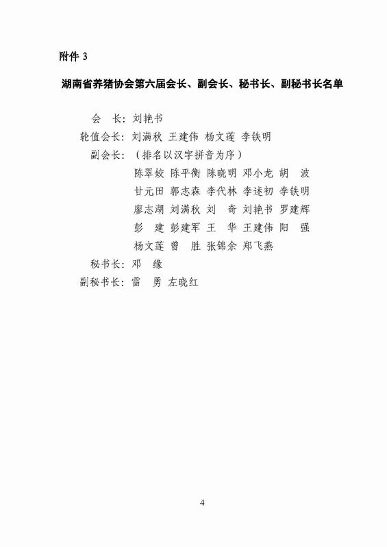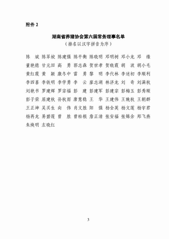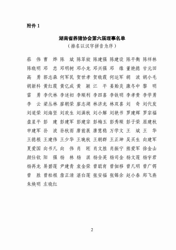 湖南省养猪协会关于印发理事名单的通知