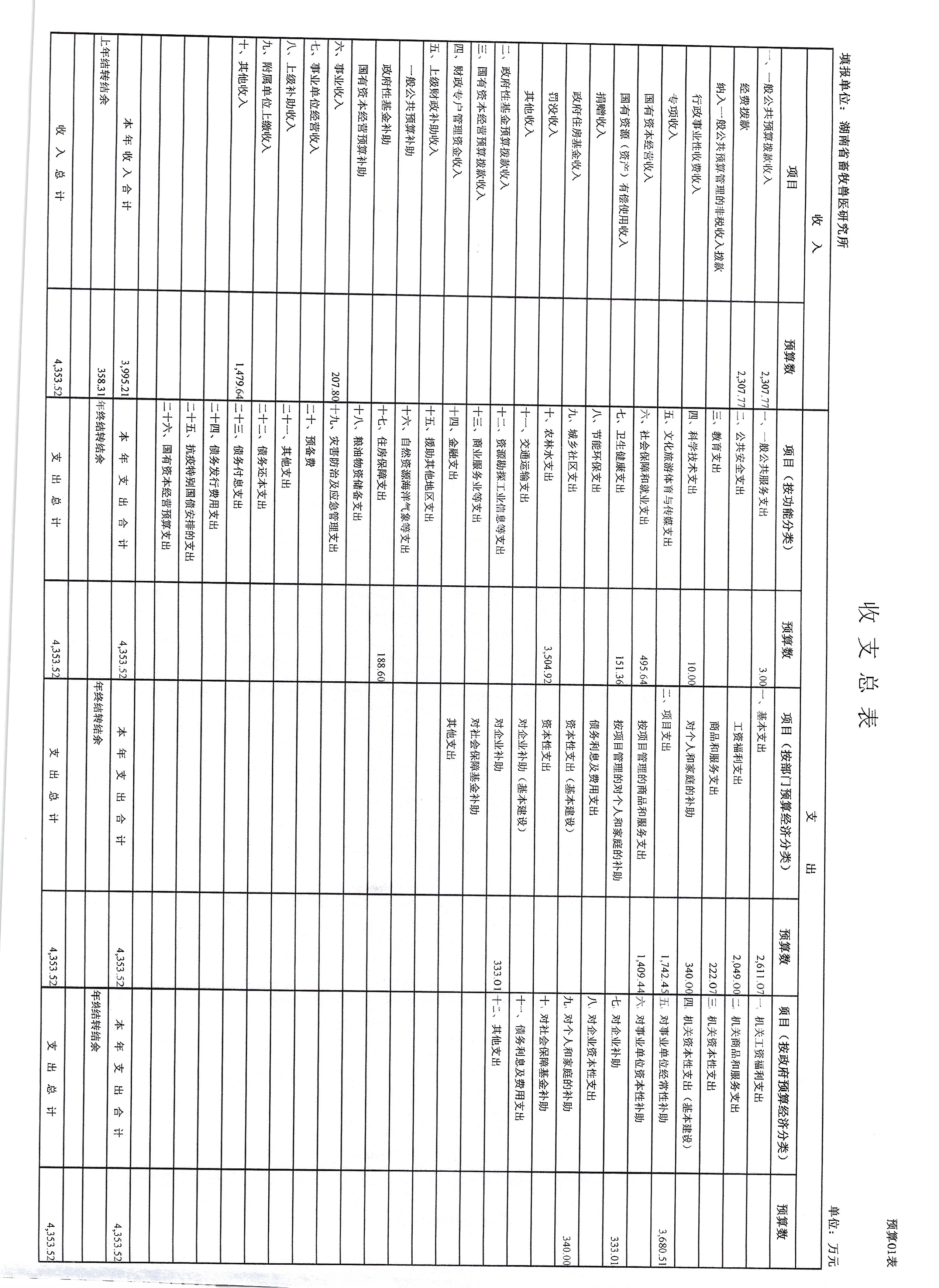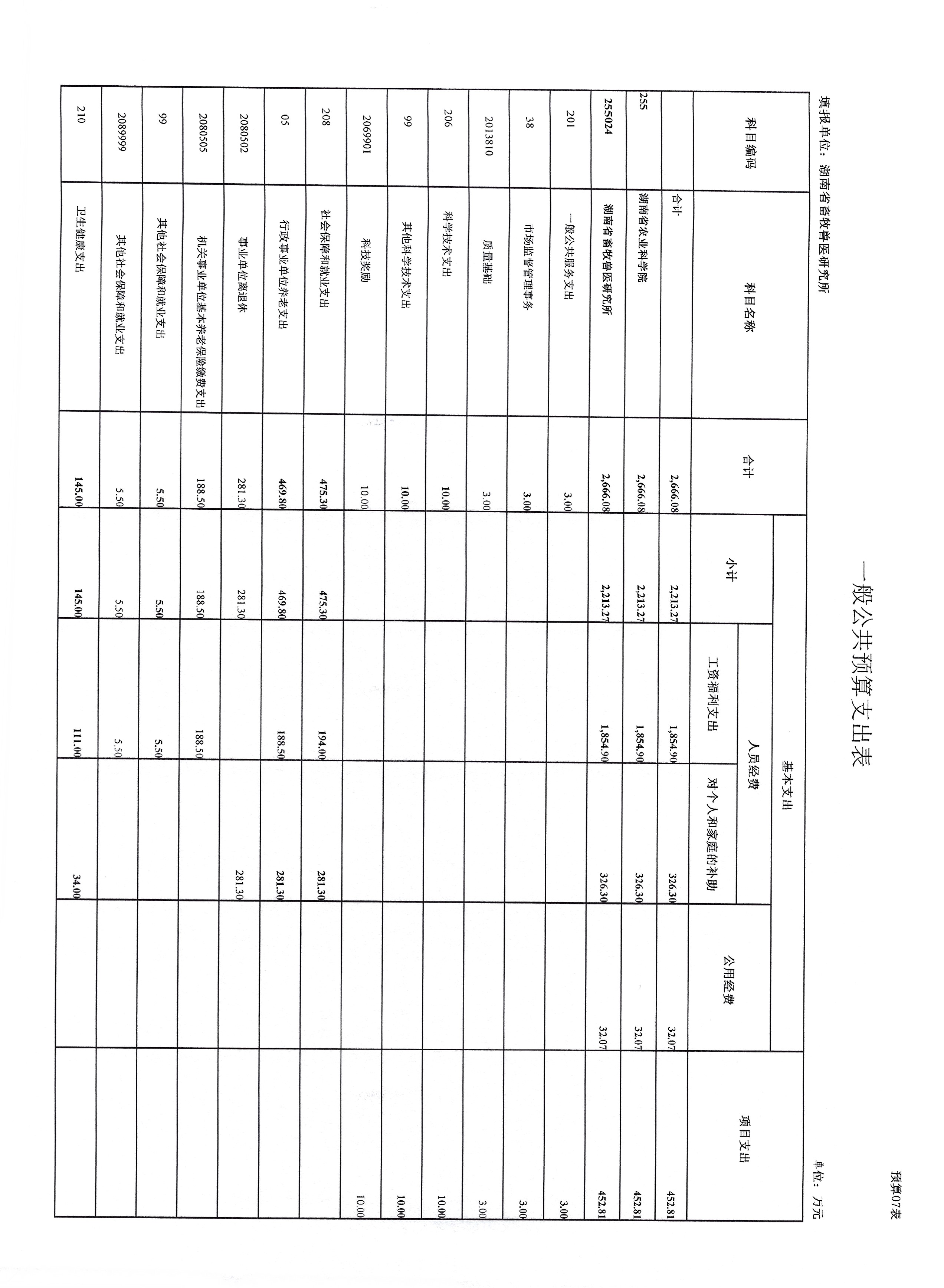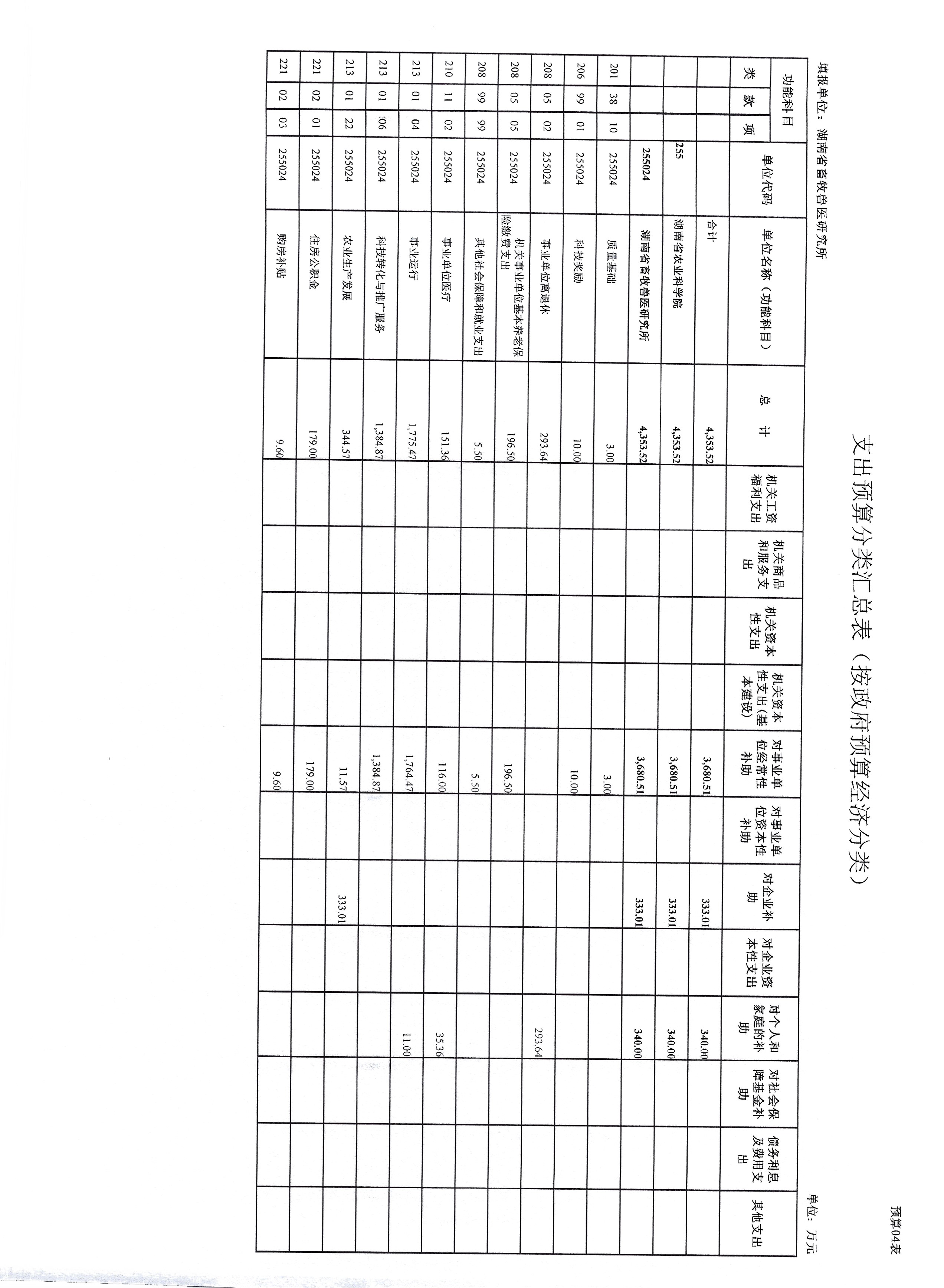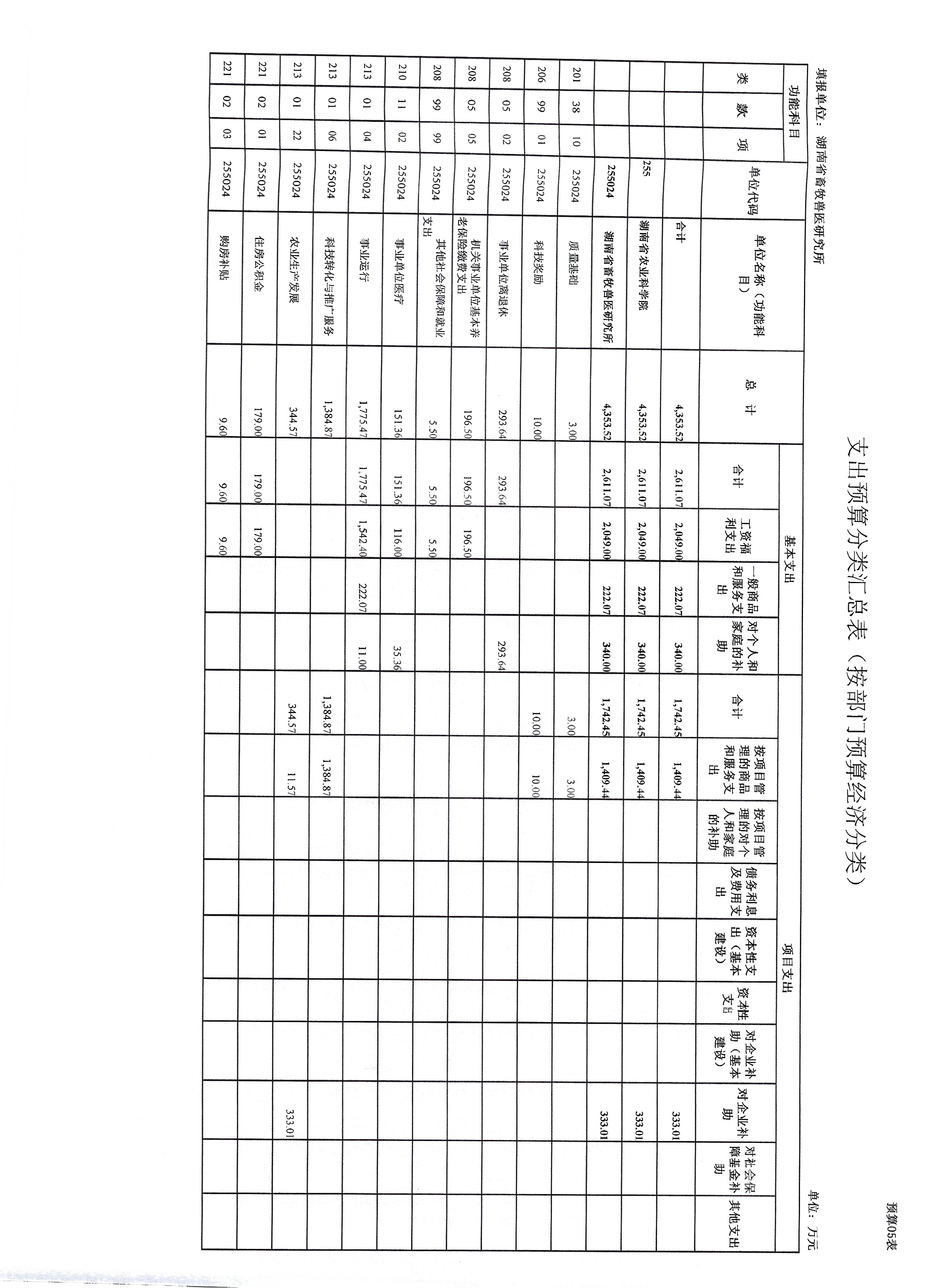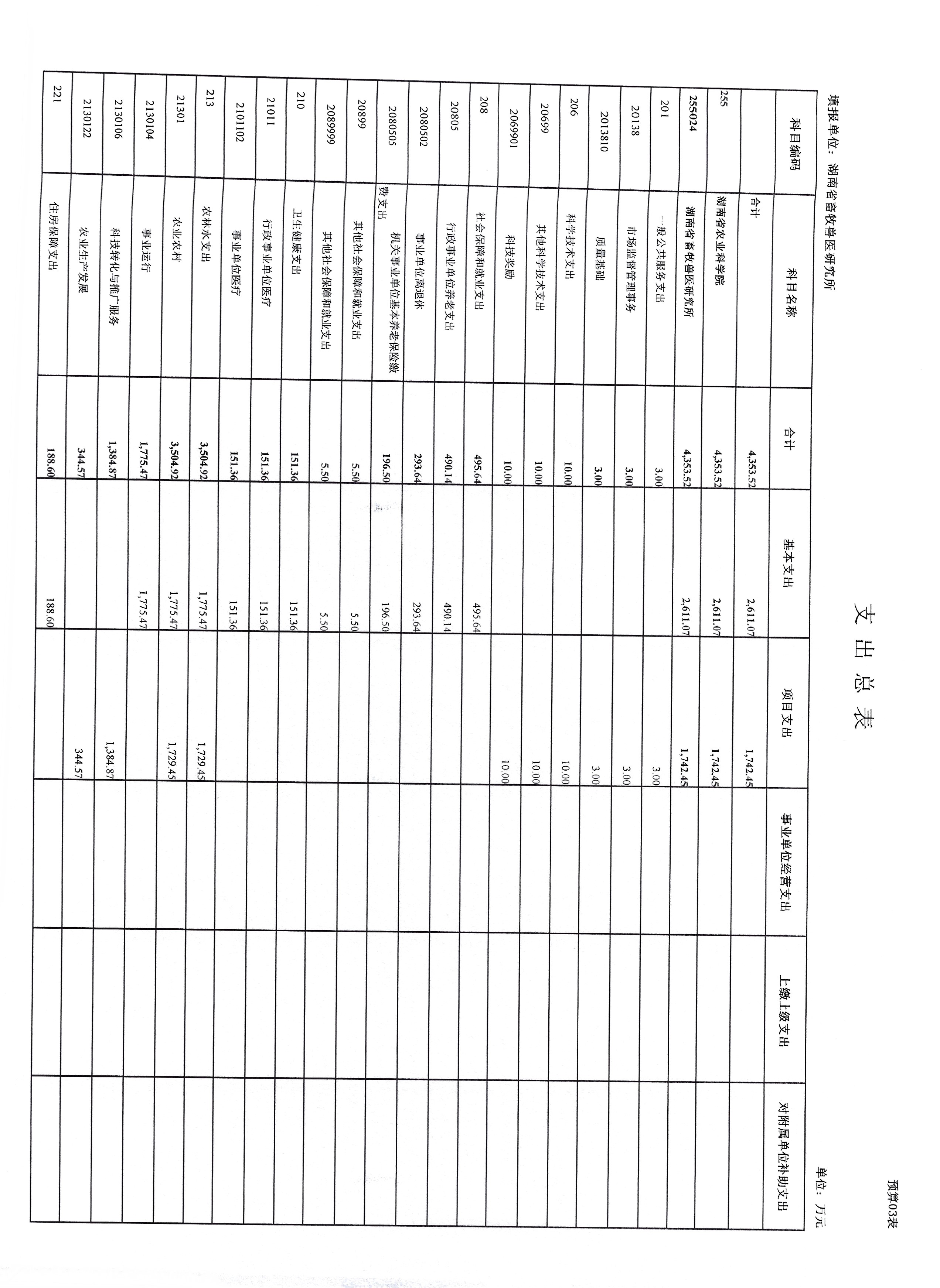 湖南省畜牧兽医研究所2025年预算表